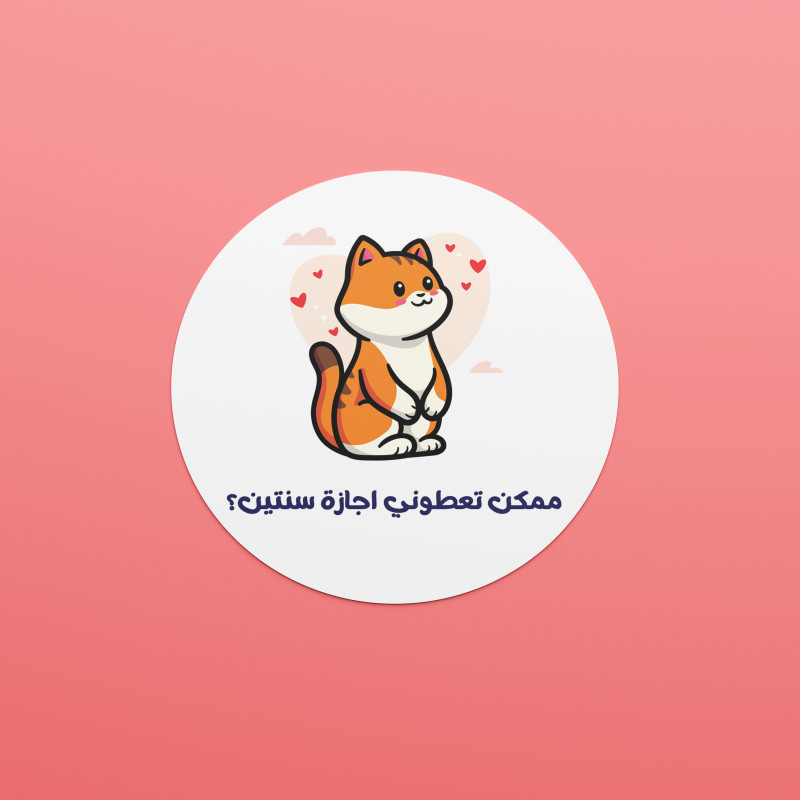 أضف لمسة فكاهية إلى أغراضك مع تصميم "ممكن تعطوني إجازة سنتين". مناسب للطباعة على الملابس والأكواب والدفاتر والاستيكرات بجودة عالية.