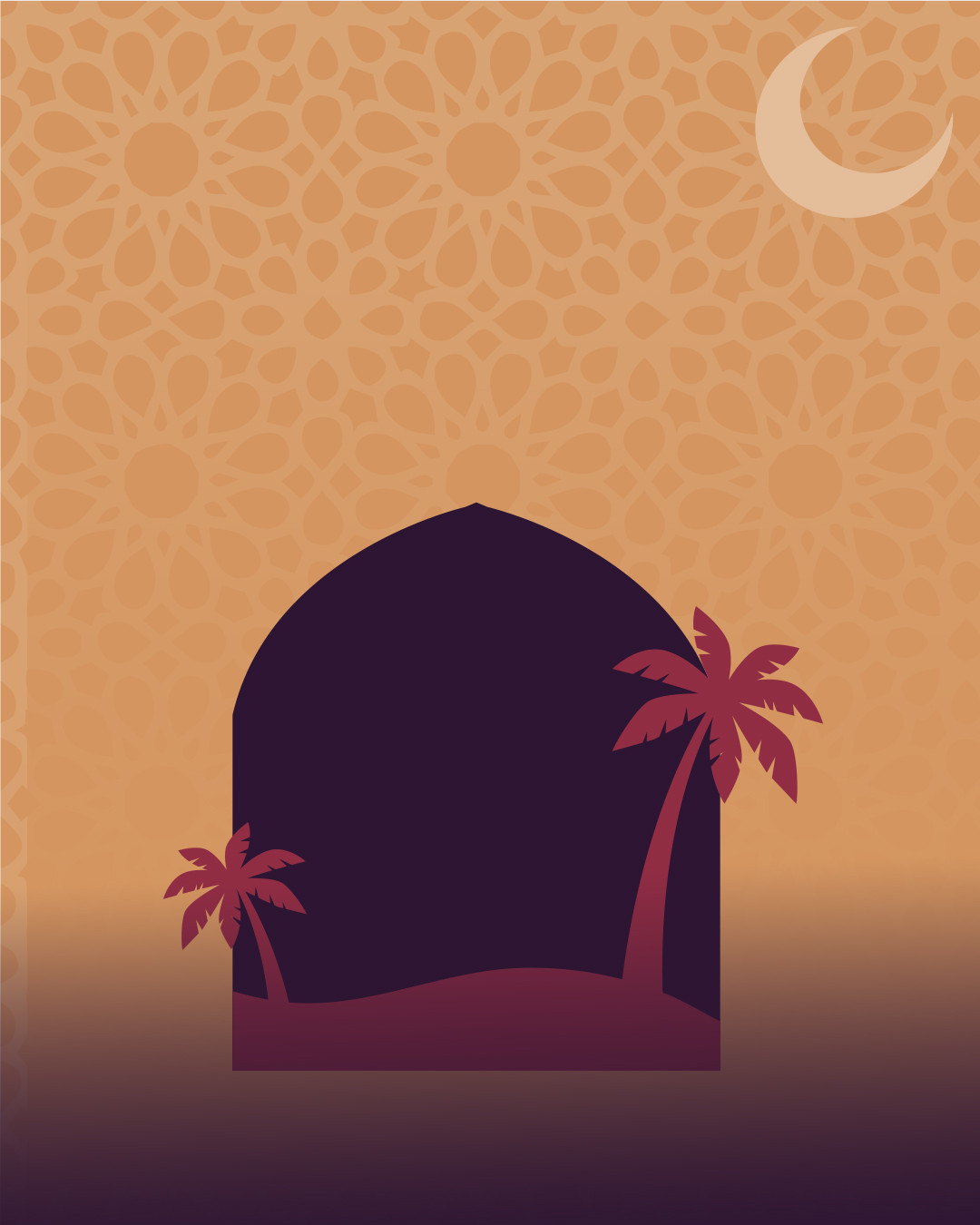تصميم راقٍ وبسيط بطابع عربي أصيل، تزيّنه خلفية بزخارف إسلامية هندسية متكررة بلون ذهبي مائل للبرتقالي، يرمز للدفء والسكينة.