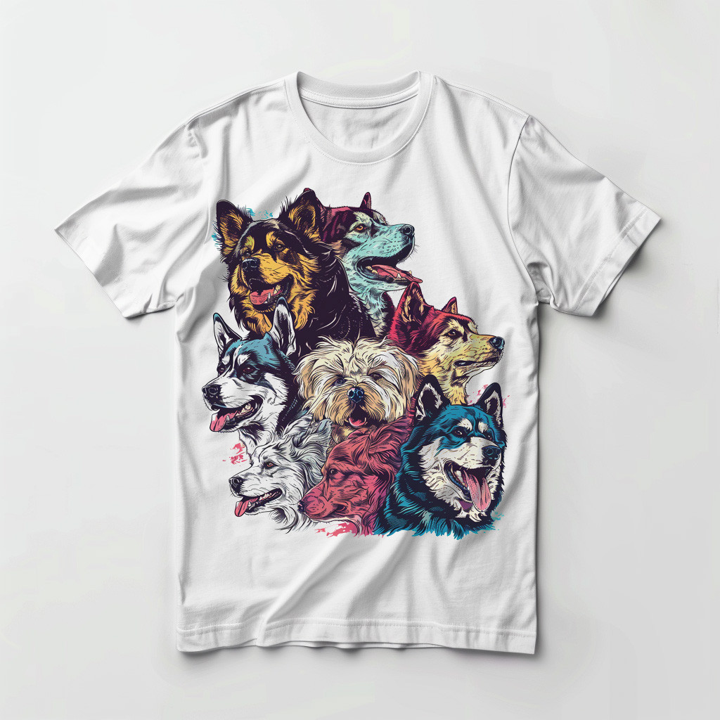 أضف لمسة من البهجة والجمال إلى ديكور منزلك مع تصميم الطباعة الرائع لكلاب بألوان زاهية. يتميز هذا التصميم الفني بألوان حيوية وتفاصيل دقيقة، مما يجعله خيارًا مثاليًا لعشاق الكلاب والفن على حدٍ سواء.